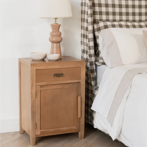 La Mesa de Luz Mc Cartney Con Puerta está fabricada en estructuras sólidas y macizas de Lenga de Tierra del Fuego.